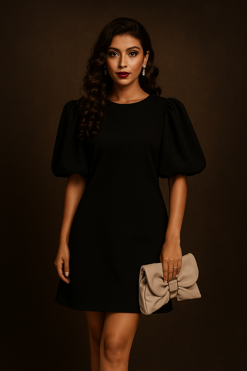 Mangas abullonadas: glamour y estilo único: Lo que realmente diferencia al Vestido Negro Elegante Ela son sus atractivas mangas abullonadas, que aportan carácter y sofisticación al diseño. Estas mangas no solo complementan la estética moderna del vestido, sino que también ofrecen una silueta refinada que realza tu presencia en cualquier lugar. Perfecto tanto para bodas, cócteles, cenas elegantes o eventos formales, este detalle es la clave para capturar miradas.